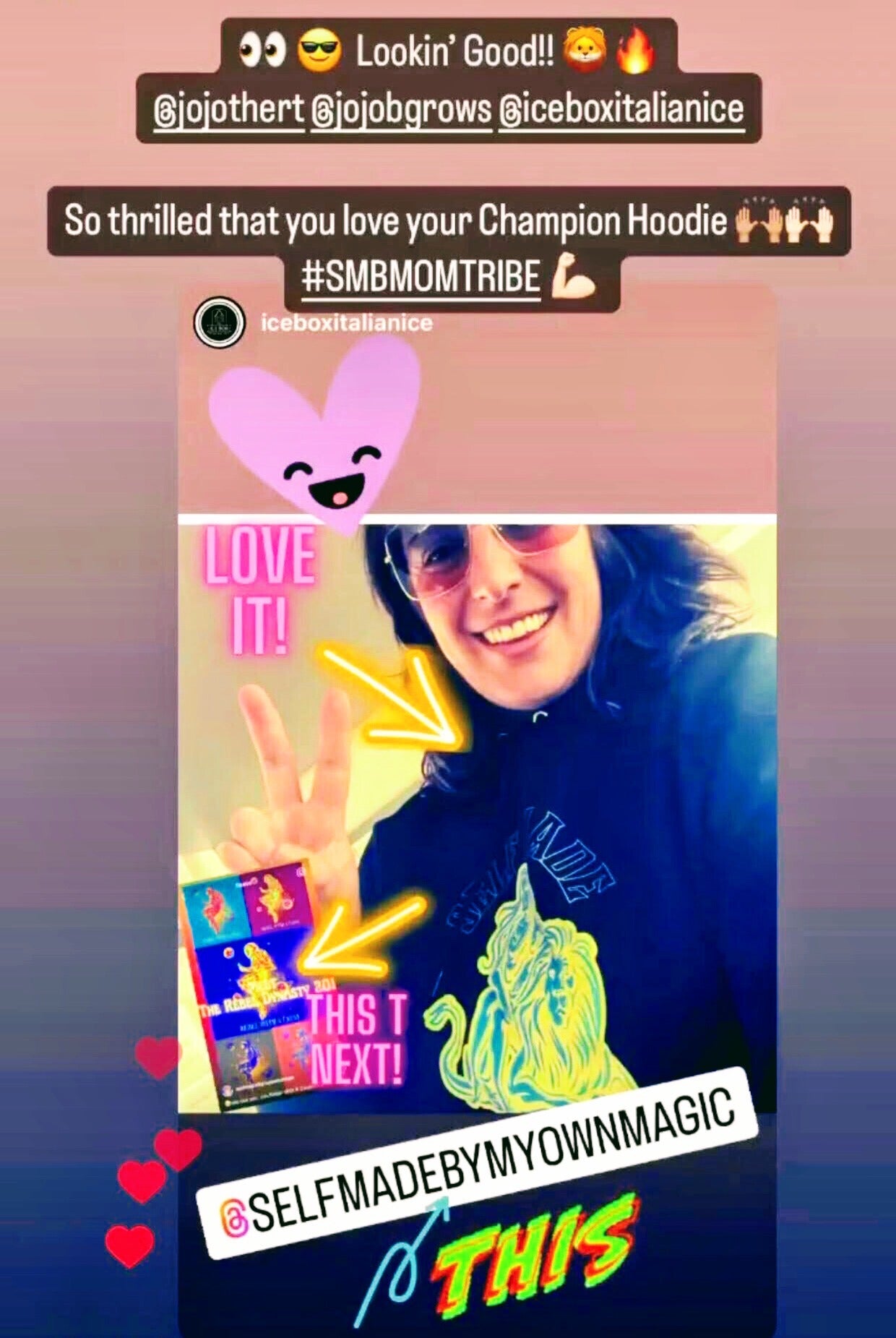 PICTURED: Amazing Tribe Member Donna Wearing our UNISEX Authetic Champion® Hoodie, Color Black, in our 90's throwback design from the Innovate. Create. Dominate. Impact. Collection 🙌🏽🔥🙌🏼