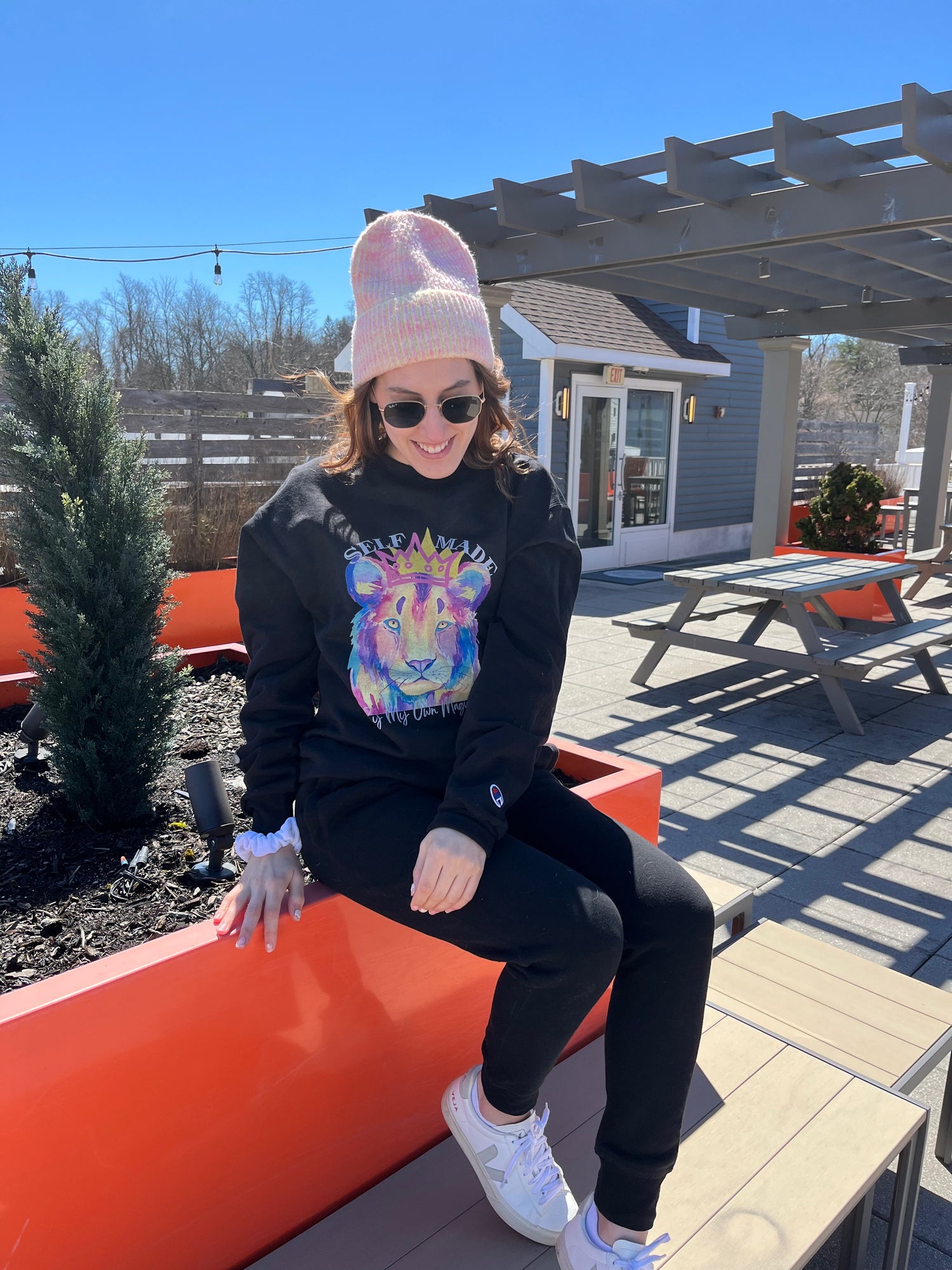 Pictured: Our Tribe Star, Dr. Rachel 🤩 rocking her Unisex Champion® Sweatshirt and GLOWING: The Classic Crown In Magnificent Mauve. Size Small.